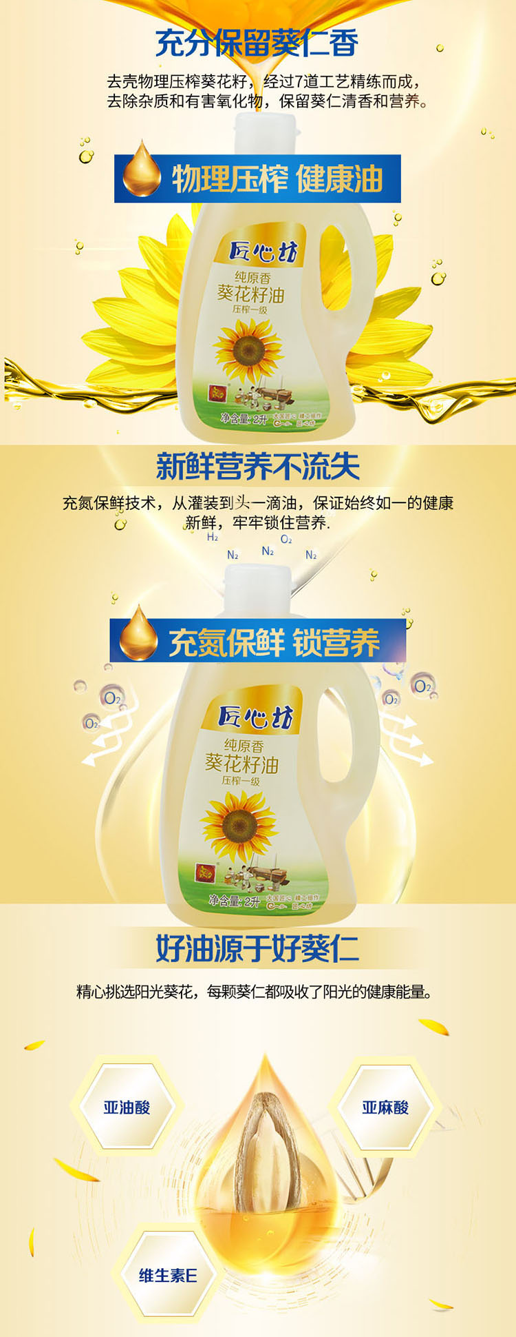 邯鄲匠心坊純正葵花籽油小瓶2L葵花油2升物理壓榨一級(jí)食用油瓜子油